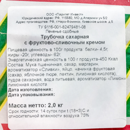 Трубочка сахарная с фруково-сливочным кремом вес /КОРОЛЬ СЛАДОСТЕЙ КФ/