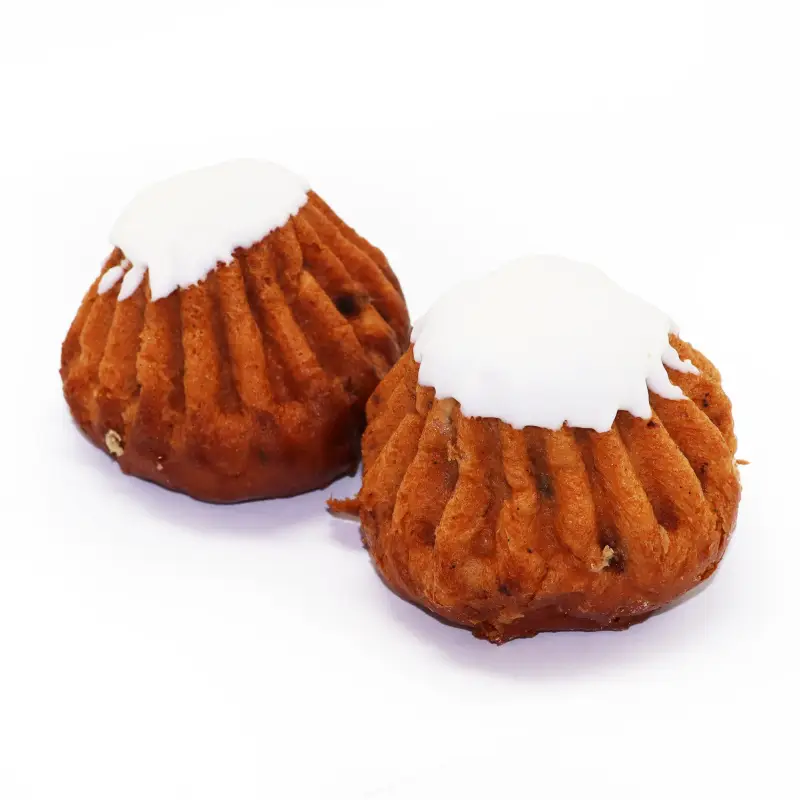 Мука в/с, сахар, дрожжи, яйцо куриное, изюм, ванилин, маргарин, белая глазурь, соль, вода