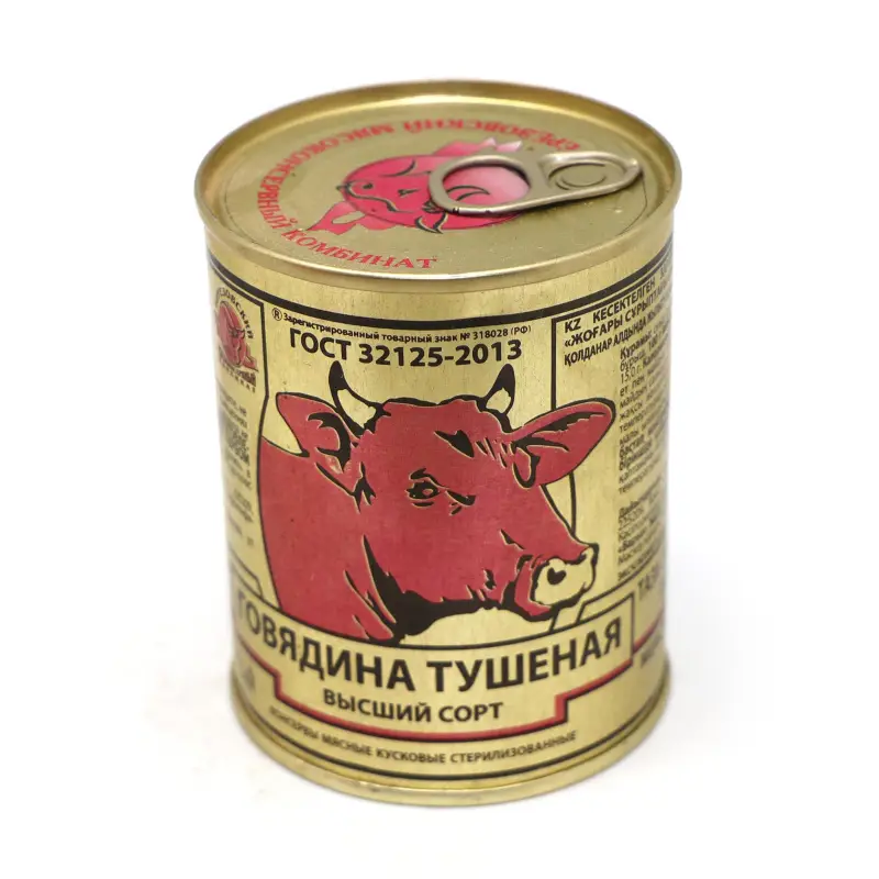 Говядина тушеная ГОСТ в/с 58% мяса жест/банка ключ 338 гр /БЕРЕЗА ТМ/