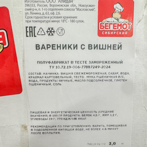 Вареники с вишней вес /АЛИДАН ТМ/