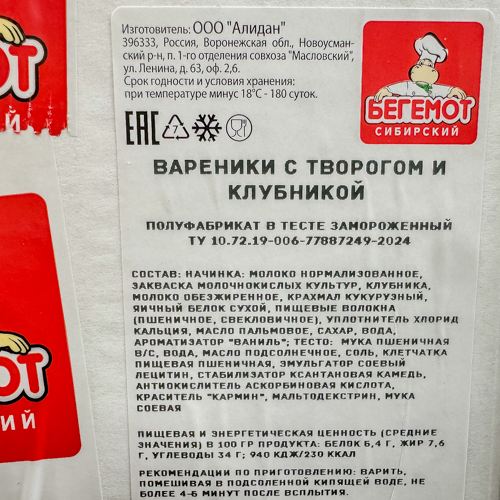 Вареники с творогом и клубникой вес /АЛИДАН ТМ/