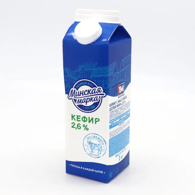 Кефир 2,6% пюр/пак с крышкой бзмж 1 л /МИНСКИЙ МЗ №1/ МИНСКАЯ МАРКА ТМ/