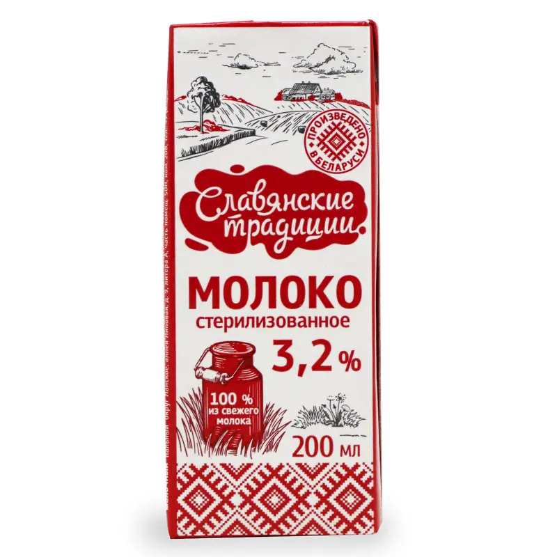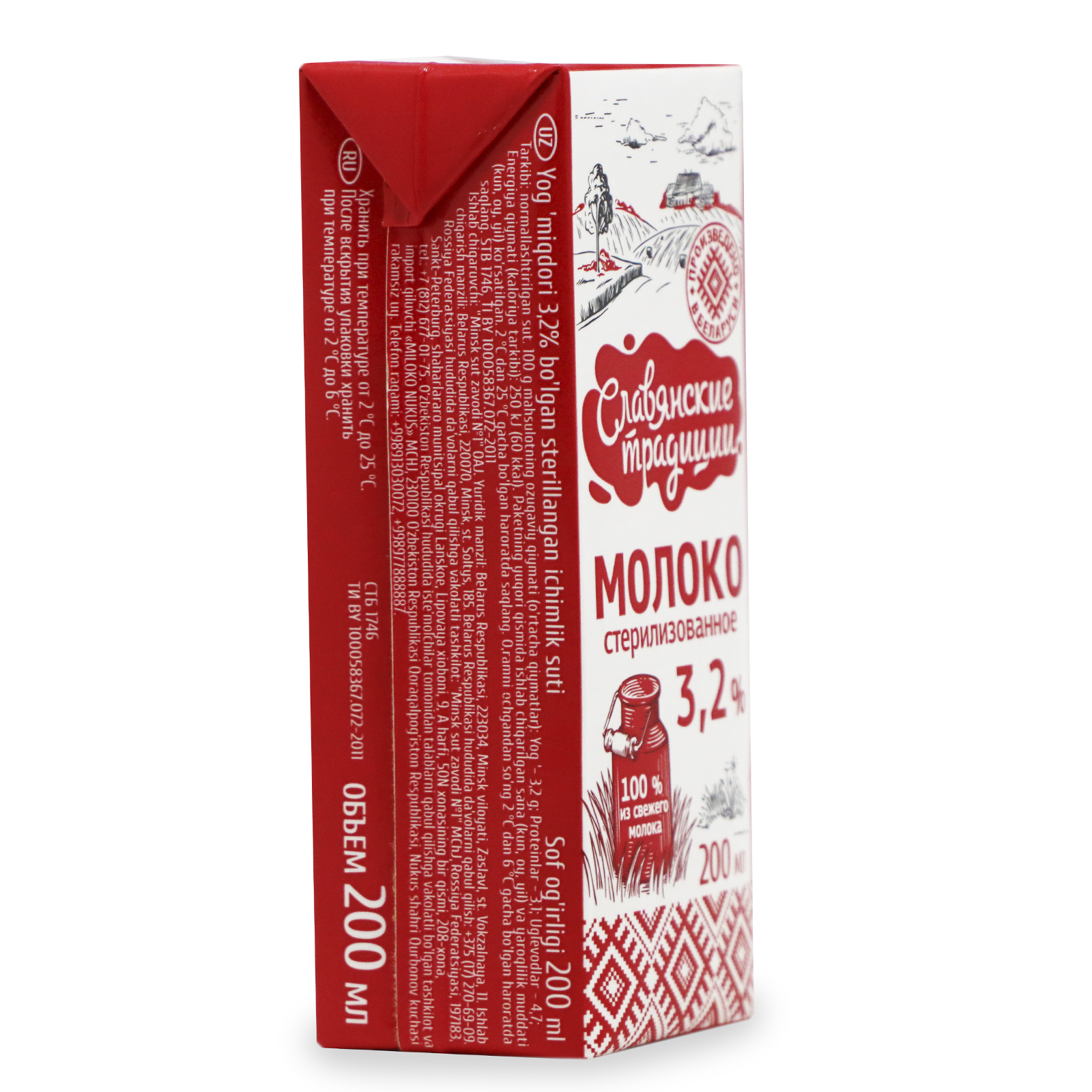 Молоко 3,2% ультра/пастер в тетра/пак 200 гр /МИНСКИЙ МЗ №1/СЛАВЯНСКИЙ ТРАДИЦИИ ТМ/