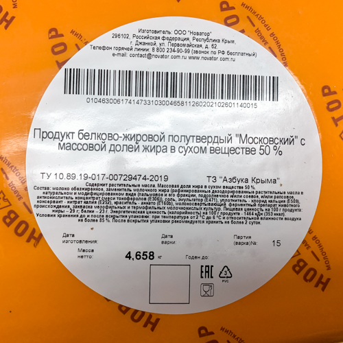 Московский сыр 50% брус продукт белково-жировой /Азбука крыма/